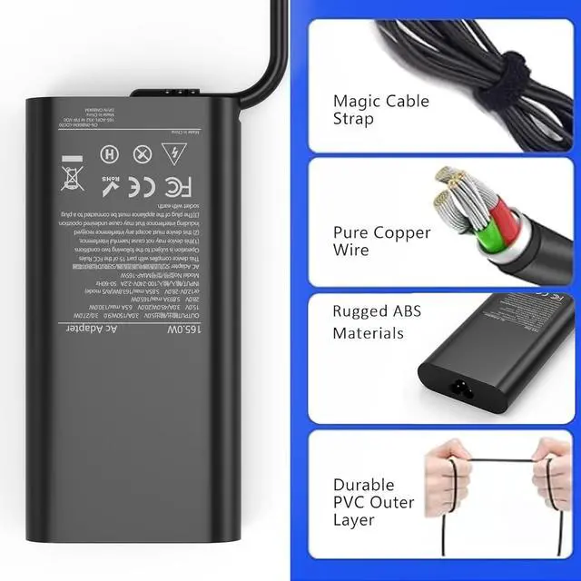 165W USB C Charger Compatible with Dell Precision 5690 5680 5770 5760 5750 5570 5560 5550 5490 5480 5470 3591 3590 3580 3581 3571 3570 3561 3560 3551 3550 3540 3541 3490 3480 3470 14 Plus 2-in-1 DB04255 Pro Rugged (13 RA13250, 14 RB14250) Pro 13 Plus PB13250 PB13255 Pro 13 14 Premium PA13250 PA14250 Pro 14 16 Plus PB14250 PB14255 PB16250 PB16255 Pro Max (14 MC14250, 16 MC16250) OptiPlex 7020 Vostro 5310 5320 Chromebook 11 3100 3110 3110 3380 3300 3400 5190 2-In-1 Laptop