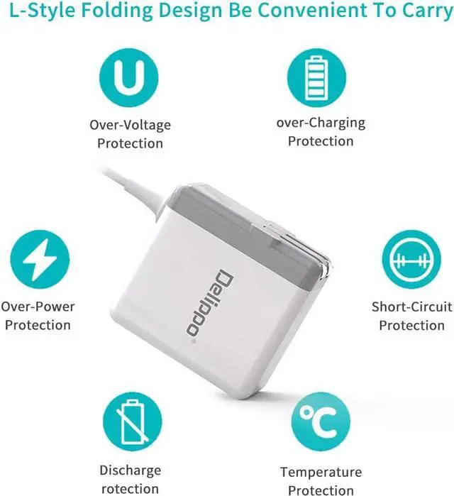 · [Smooth Texture &Compact size] Input: 110-240V 1.5A 50 60Hz Output: Output: 14.5V - 3.1A 45W. 6ft Cable long ,You will be surprised by our design. The Smooth Texture will not leave your fingerprints. Small and Fashion design