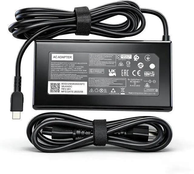Input: 100-240V~2.5A 50-60Hz Output: 20.0V 7.0A 140W/ 19.95V 5.0A/ 15.0V 3.0A/ 9.0V 3.0A/ 5.0V 3.0A 15W USB Type C