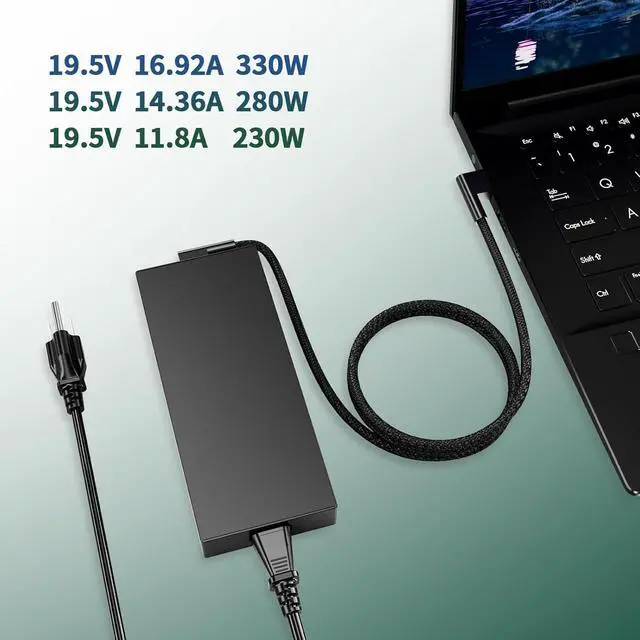 Package Contents: 1 x 330W Blade AC Laptop Charger, 1 x 5.9ft US Power Cord