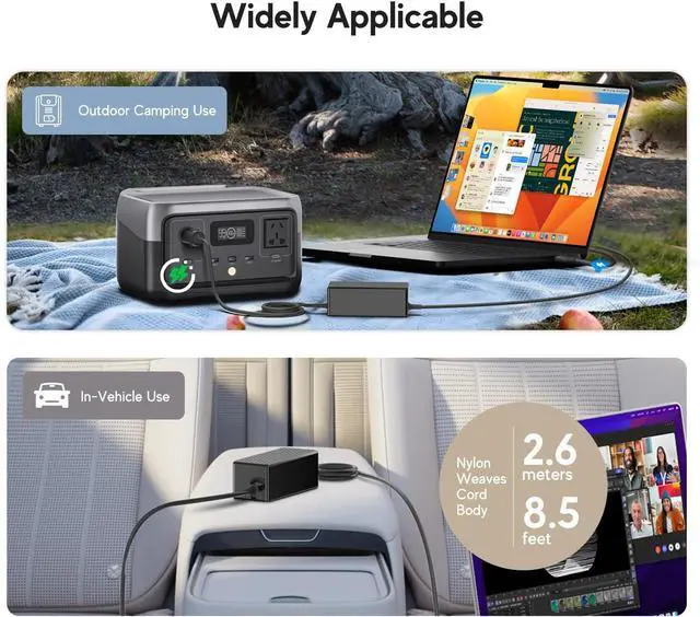 Certified Safety & Durable Design: Built-in safeguards provide multi-protection against overcurrent, overvoltage, overheating, and short circuit. Certified by CE, FCC, and UKCA, this car adapter guarantees reliable performance on long drives, commutes, or road trips. Compact and lightweight, reinforced DC connector withstands thousands of plug-ins, and the premium TPE cable is flexible, tangle-free, and long-lasting. Includes a rubber strap for neat cable management.