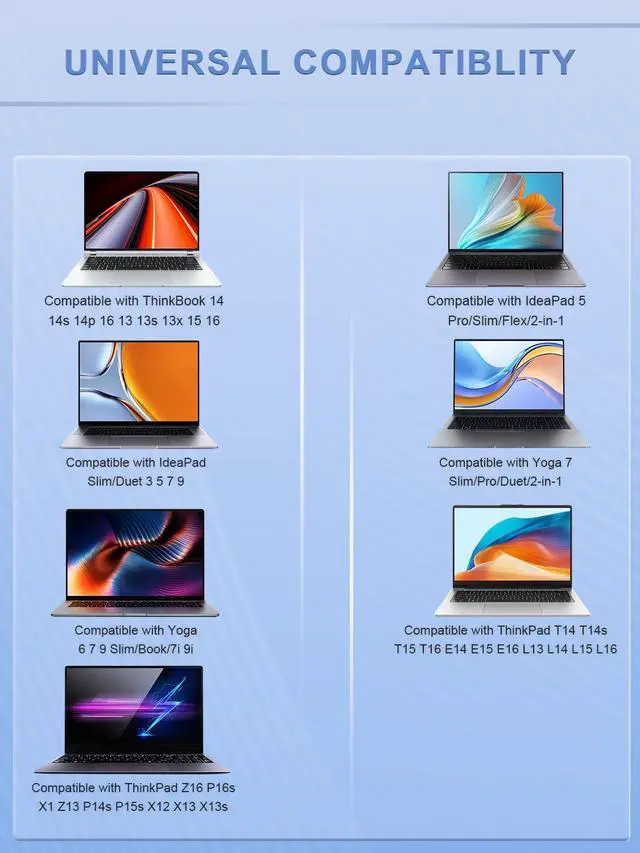 CompatibilityThis 135W power adapter is fully compatible with Lenovo's mainstream product lines, including ThinkPad (Z16 P16s T14 C13 C14 T580 T590), Yoga Slim/Pro 7 9(720 910 920 C930 730), and IdeaPad Pro 5 more series. It is also compatible with Lenovo laptops equipped with 100W, 95W, 65W and 45W power supplies. (Note: Please ensure your connector type is USB Type C before purchasing.) If your model requires 20V/6.75A output, this well-designed adapter is ideal.