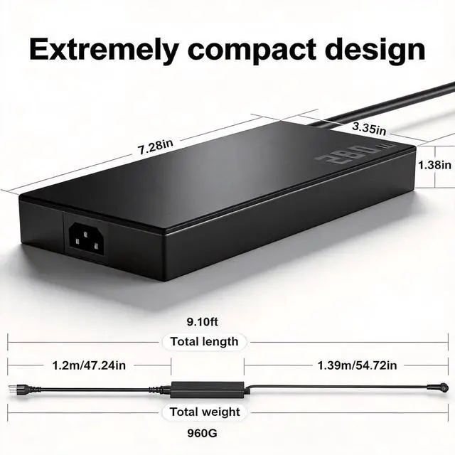 Durable Design & Portable for Multiple Scenarios: Adopts thickened wear-resistant power cord, anti-bending, anti-tangling, longer service life; compact body design, easy to store and carry, perfect for home, office, business travel, LAN party and other scenarios, power your laptop anytime and anywhere.
