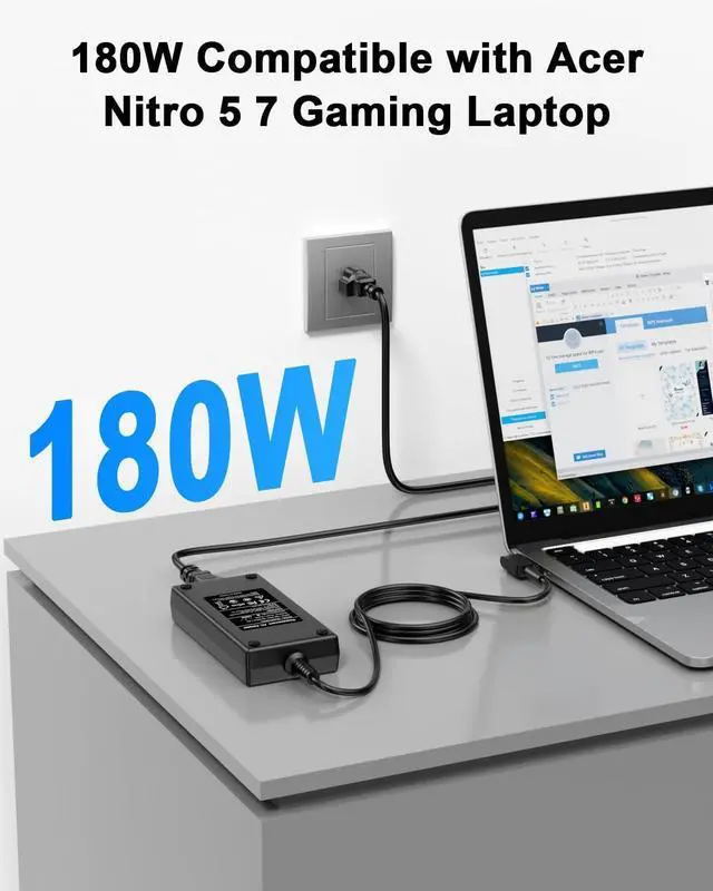 Ryaobwu 180W laptop charger Compatible With Acer Predator Helios 300 G3-571 G3-571-77QK G3-571-51NK; G3-572 G3-572-78JY G3-572-7526 G3-572-73FH G3-572-72YF G3-572-72MT G3-572-795X PH317-51 PH317-51-70KH PH317-51-78SZ PH317-51-787B PH317-51-75GZ PH317-51-77QK