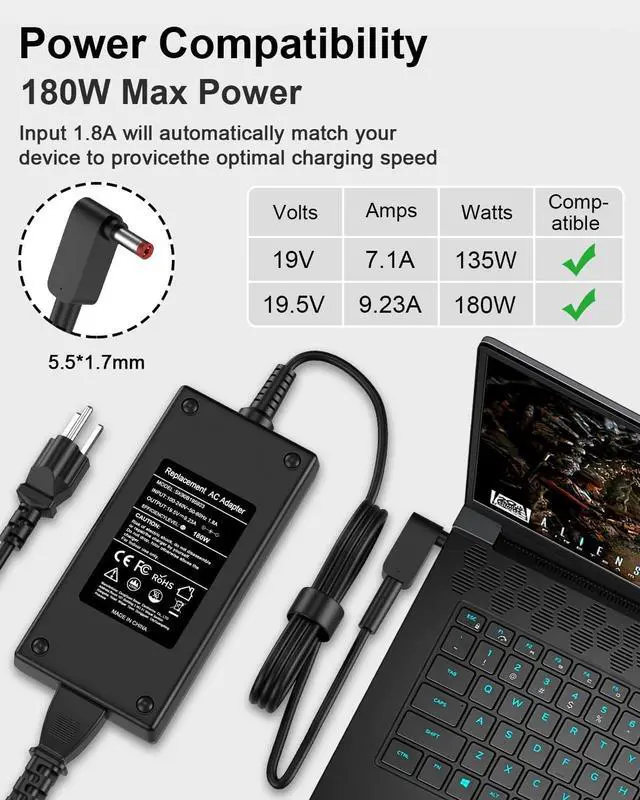 SPECIFICATION- Input100-240V 50-60Hz 1.8A, Output: 19V/7.1A, Power Supply: 180W, Connector: 5.5*1.7mm;