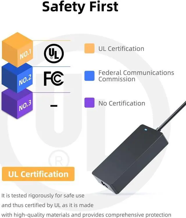 AC adapters manufactured with the highest quality materials and include laptop safeguard features against incorrect voltage, short circuit, internal overheating
