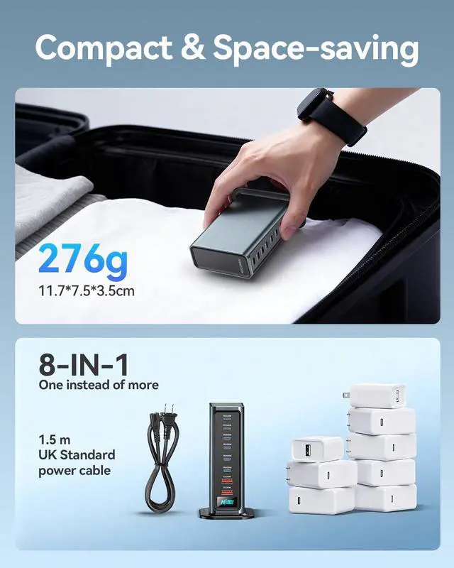 Compact and Portable Design: Designed with convenience in mind, our charging station features a compact and portable design that fits easily into your bag or backpack. Whether you're traveling for business or pleasure, this charging hub ensures you stay connected. Its lightweight construction and sleek finish make it a stylish addition to any setting, while the durable build quality guarantees long-lasting performance.