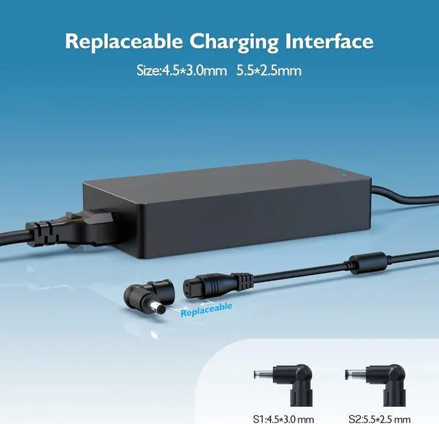 Superb Compatibility: Fit for MSI laptops with round power connector, model e.g. Fit for Alpha-15-B5EX-17-B5EEK, Bravo-15-B5DX, Creator-M16-A11UD-M16-A11UC-Z16-A11UE-Z16-A11UET-Z16-A12UET, Fit for Cyborg-15-A12VE-15-A12VF-15-A13VE, Fit for Crosshair-15-A11UCK-15-A11UDK-15-A11UEK-17-A11UCK-17-A11UDK-17-A11UEK, Fit for Stealth-15M-A11SDK, Stealth-15M-A11SDK-15M-A11SEK-15M-A11UEK-15M-B12UE, Fit for Sword-15-A11UC-15-A11UD-17-A11UD and more