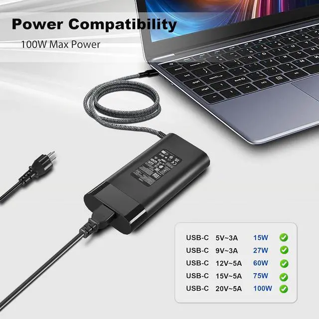 100W USB-C AC Charger for HP Envy17-cw1000 17-cw1097nr 17-cw1087nr Laptop Charger
