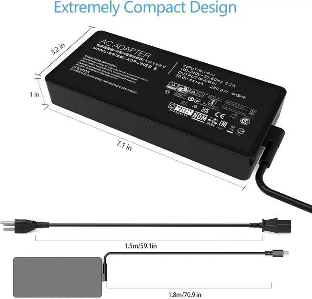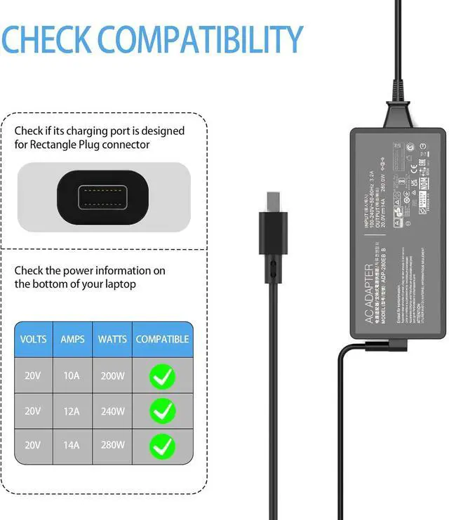Input : 100-240V 50-60Hz, Output: 20V 14A, Watt: 280W Also Compatible with 240W 200W 180W,Connector: Rectangle Plug (Compact Plug)
