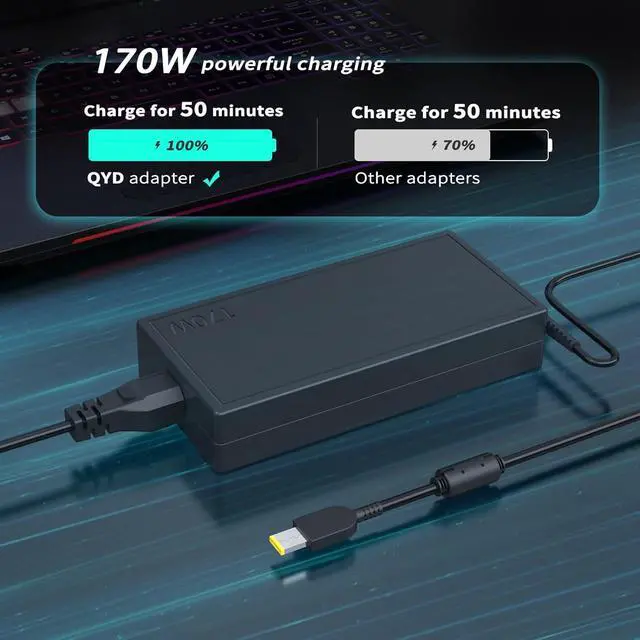 Perfectly&Exactly Laptop Charger Replacement - QYD 170W 20V 8.5A Charger for Laptop Compatible with Lenovo ThinkPad P15 Gen 1 20ST ThinkPad P15 Gen 2 20YQ ThinkPad P52 20MA 20M9 laptop charger.