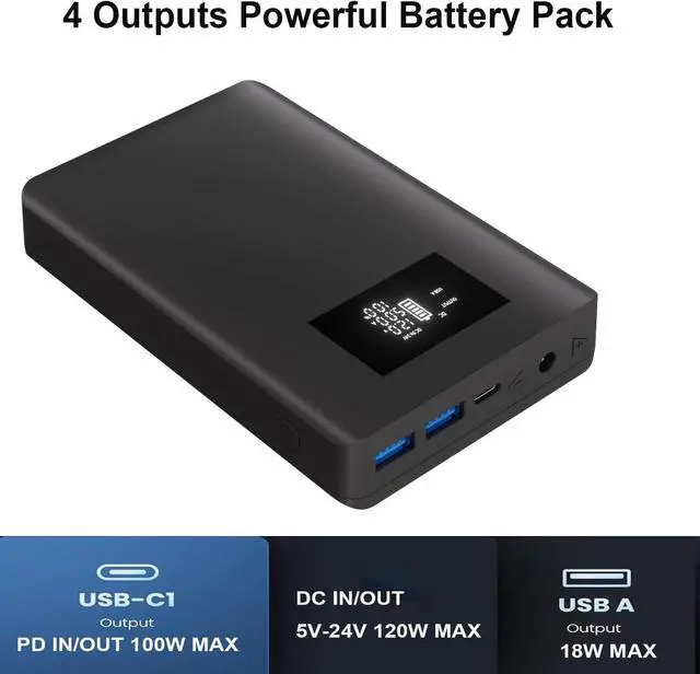 With 4 ports : 1*Type c port (input/Output 100W max) 2 *USB output port (18W max) 1*DC input/Output 5V-24V (96W max)