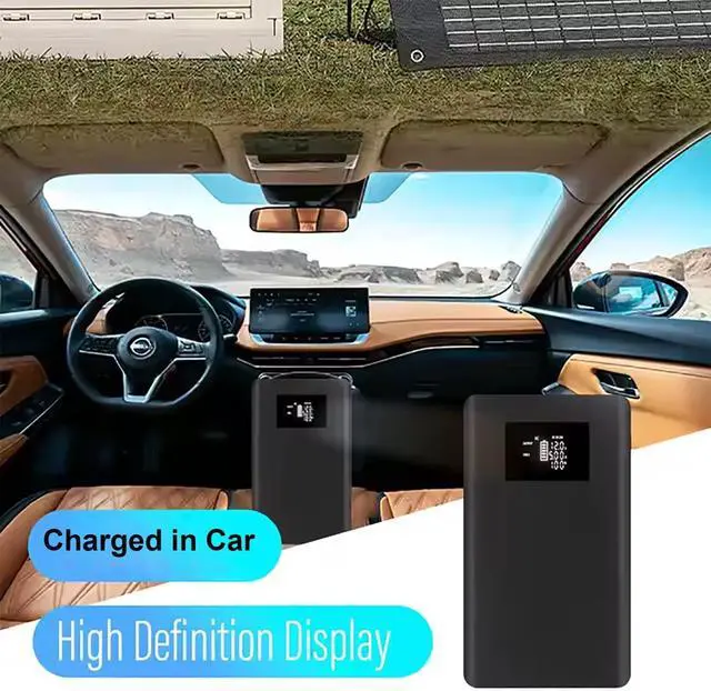 Have 4 different charging Ways 1.Use type c adapter charge 2.Use ac dc adapter charge 3.Use solar panel charge 4.Can charge in the car by the car cigarette lighter port
