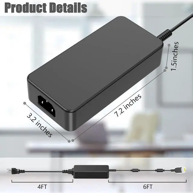 AC input voltage: 100 ~ 240V 50 ~ 60 Hz 6.3A, DC output: 20V ~ 20A 400W. Connector size: Yellow Square Tip