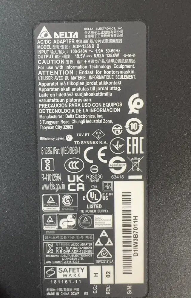 Output 19.5V 6.92A 135W with 5.5×1.7mm barrel connector. Designed for Acer laptops requiring 135W power input. Please verify your original adapter voltage, wattage, and connector size before purchase.