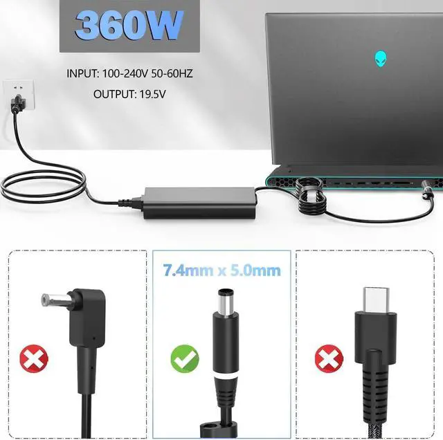 Input:AC 100-240V 50-60Hz, Output: 19.5V 18.46A Power: 330W(Compatible with Dell Alienware 330W 240W Charger),Connector Size:7.4 X 5.0mm