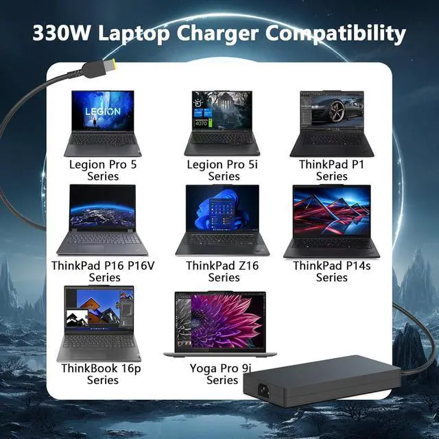 Power Specs: Input Voltage:100-240V AC 50/60Hz; Output: 20V 16.5A 330W,Also Compatible with 400W/300W/245W/230W