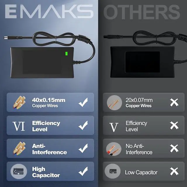 Emaks 180W 130W Docking Station Power Adapter SupplyPerfect for Dell WD15 Monitor Dock 4W2HW 7FJ4J 450-AFGM 450-AEUO,Dell Business Dock - WD15 K17A001 RD43V 452-BDDU,Dell Business Thunderbolt Dock - TB16 K16A001 2PMR2 452-BCNP,Dell Docking Station - WD19 KXFHC 0KXFHC 210-ARIQ,Dell Docking Station - WD19S K20A,Dell Thunderbolt Dock WD19TB K20A001 9GMPM 210-ARIK,Dell Thunderbolt Dock