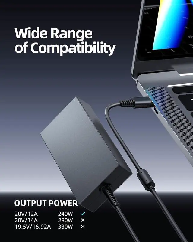 Fit for MSI GE66 GE76 Raider GP66 GP76 Leopard Laptop [It won't charge your device if it needs power over 240W].