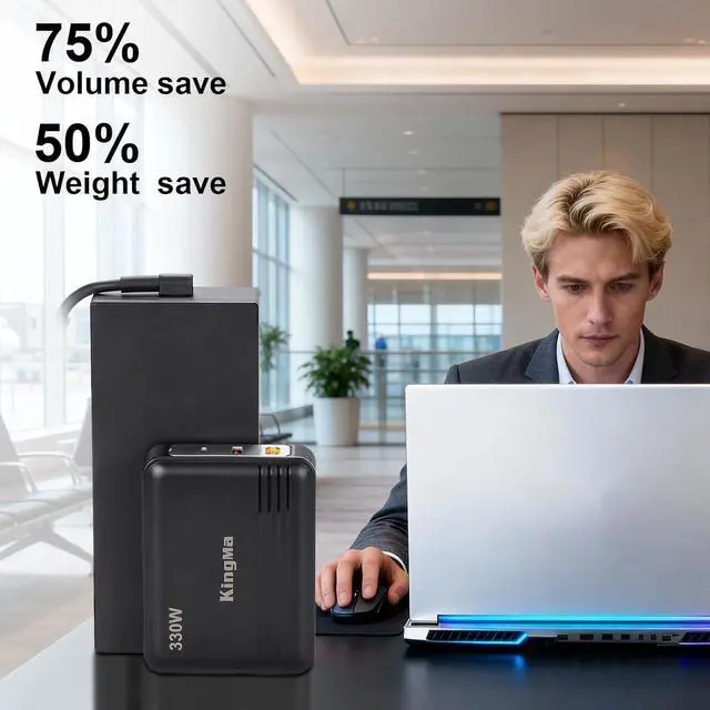 Multi-charging efficiencyKing Ma ASUS laptop charger with XT60 interface, single-port maximum output power of up to 380W380W Dedicated Power, in addition to 100W USB-C and 60W USB-A interface, can support multiple electronic devices such as laptops, tablets, mobile phones and other electronic devices at the same time charging, without the need for frequent switching, to meet the power needs of multiple devices for professional scenarios, such as game development, engineering design, and art work