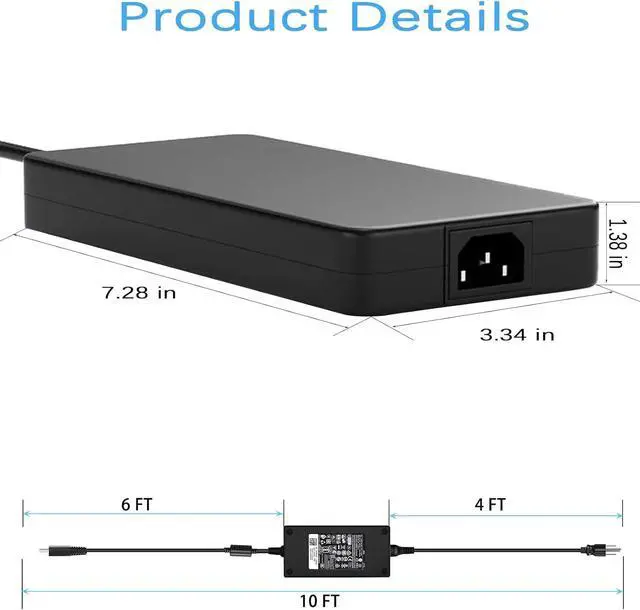 Specification: Input Voltage: 100-240V, 50-60Hz , Output Voltage: 330W 19.5V/16.92A, (also Works for 280W Wattage Devices).Power Jack Connector Type: USB Tip.