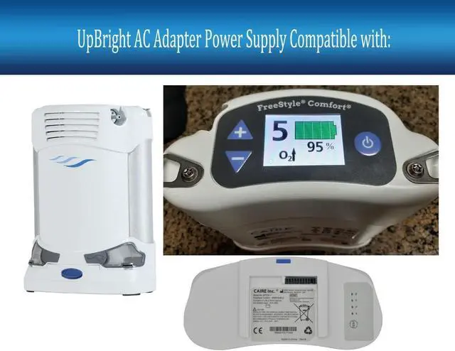Compatible with: Caire Model FreeStyle Comfort Oxygen Concentrator Free Style Confort by Caire REF AS200-101 AS200101 REFAS200-101 15 VDC/10.0A Power Supply; Caire Inc. Model No.: BT034-1 FreeStyle Comfort 4INR19/66-2 96.5 W-hr Lithium Ion battery pack 14.4 VDC 96.5Wh 14.4VDC 14.4V DC Portable Battery;