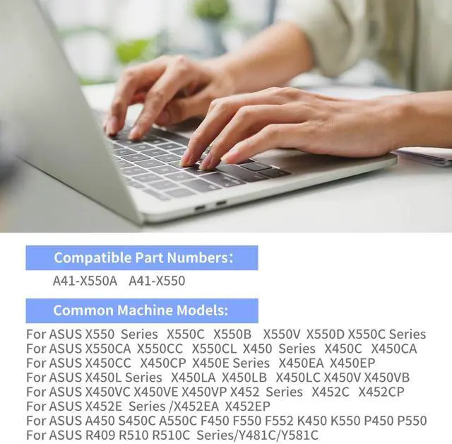 Compatible Laptop Model: For ASUS X550 Series X550C X550B X550V X550C Series X550CA X550CC X550CL X450 Series X450C X450CA X450CC X450CP X450E Series X450EA X450EP X450L Series X450LA X450LB X450LC X450V X450VB X450VC X450VE X450VP X452 Series X452C X452CP X452E Series X452EA X452EP Y481C/Y581C