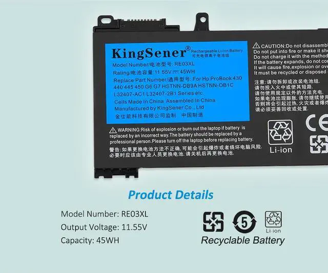 Kingsener RE03XL Laptop battery For Hp ProBook 430 440 445 450 455 G6 zhan 66 Pro 13 14 G2 Series HSTNN-DB9A HSTNN-OB1C HSTNN-UB7R