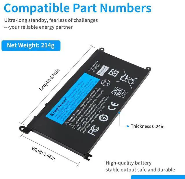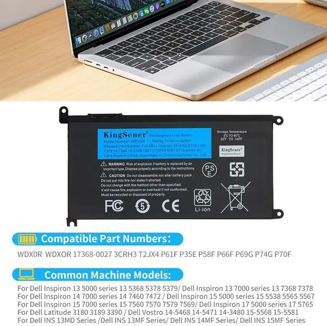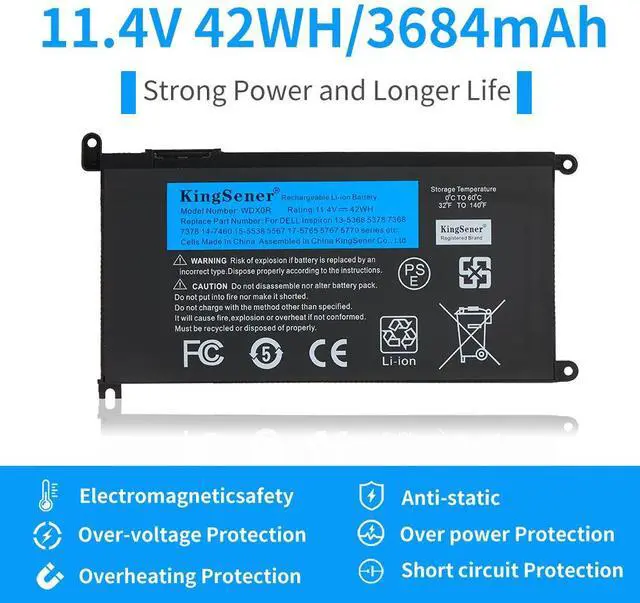 KingSener WDXOR Laptop Battery Replacement For Inspiron 14 7000 5567 7560 5767 7472 7460-d1525s 7368 7378 5565 latitude 3488 3580 WDX0R