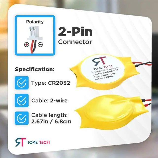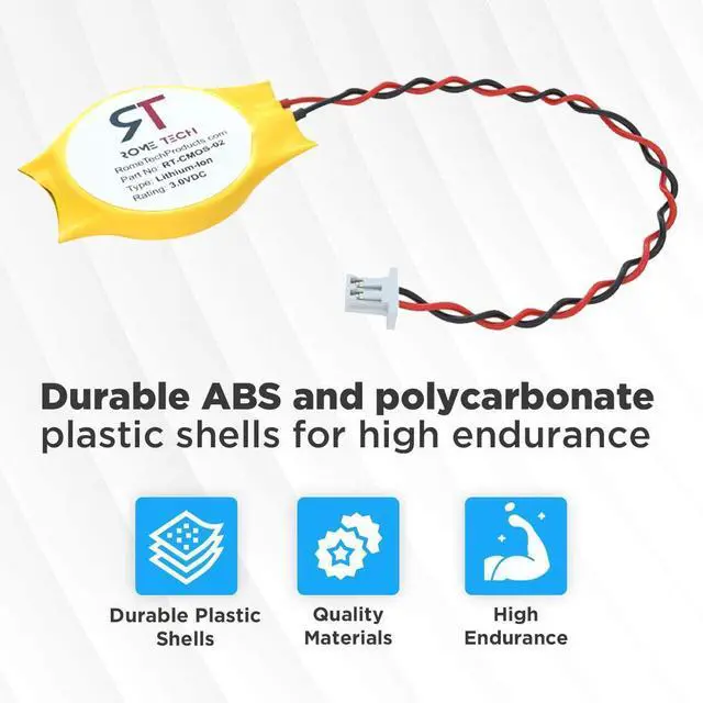 Rome Tech CMOS batteries are simple to replace in a wide variety of laptops and netbook devices. Each battery includes an identification label so you can easily verify the authenticity and a matching connector for 100% compatibility. Housed in protective packaging, the CMOS RTC battery can be easily removed and installed without soldering or modifications.