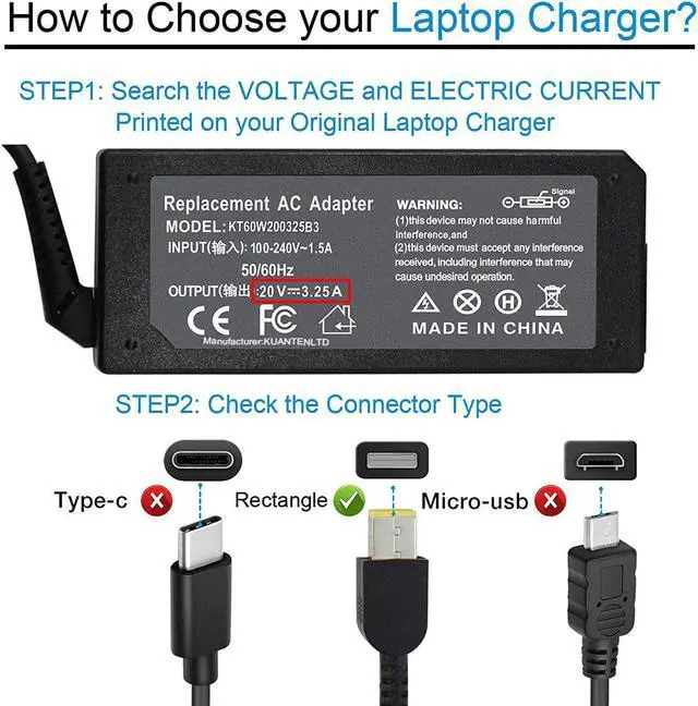 Welcome to Tevelmick's store! Please note that our adapter work for 20V 3.25A 65W / 20V 2.25A 45W laptop!