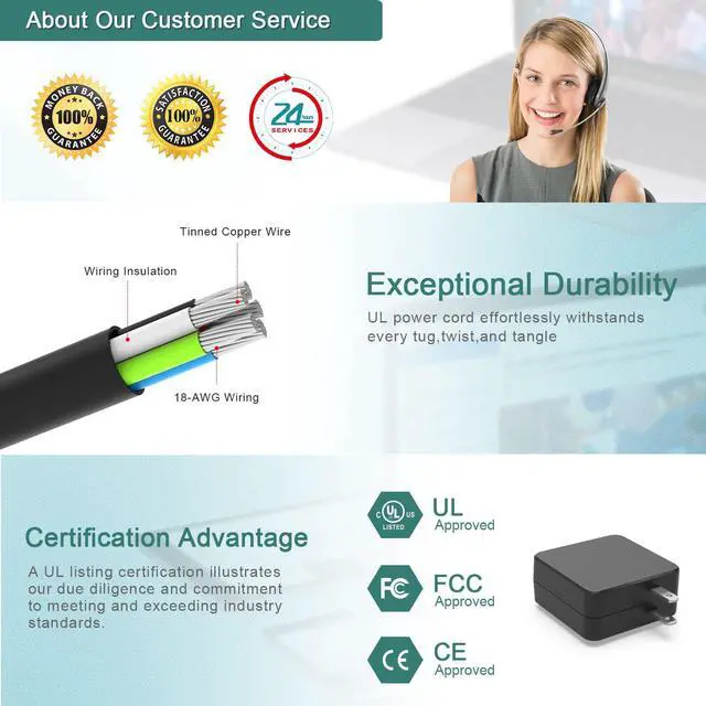 Certified Safety: UL Listed - went through extremely rigorous quality exams to meet all Underwriter Laboratories' safty standards (the nationally-recognized gold standard for electronic product safety), protect your device from overheating, overvoltage, overcurrent, and short-circuiting.