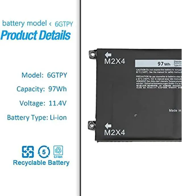 - 97Wh Laptop Battery 6Gtpy 5041C 05041C 5D91c 5Xj28 Gpm03 Replacement For Dell Xps 15 2017 9560;Dell Xps 9550 2015;Dell Xps 15 2018 9570 Series;Dell Xps 15 7590 Series;Dell Xps 15 9570 2018 Xps 15 9560 2017 I7-7700Hq Xps 15 7590; Dell Vostro 7500 Series;Dell Precision 5520 M5520 Workstation Series;Dell Precision 5530 M5530 Workstation Series;Dell Precision 5540 M5540 Workstation Series, Dell Precision 5510 M5510 Workstation Series.