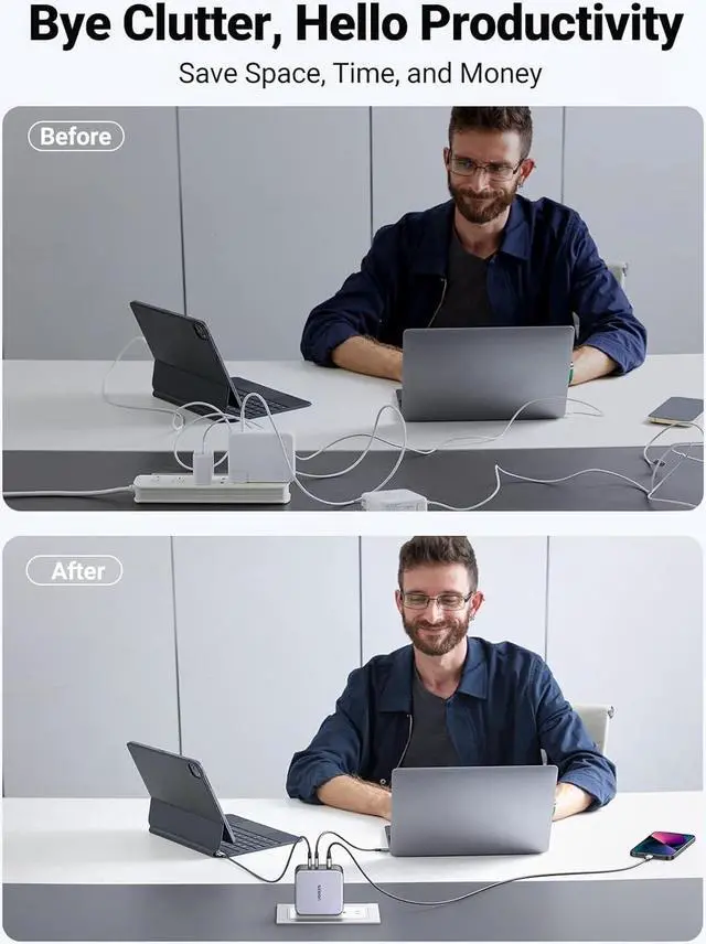 - 3-In-1 Multiport Charging: Two Usb-C Ports And One Usb-A Port Power Two 14-Inch Laptops And A Phone Simultaneously, Fast Enough For A Multi-Device Tech User.