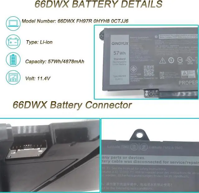 Help others learn more about this product by uploading a video!QINGYUX 66DWX FH97R 0HYH8 0CTJJ6 Laptop Battery Compatible with DELL Latitude 7340 Latitude 7440 Latitude 7640 Series Notebook