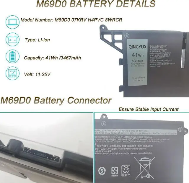 1 X M69D0 battery. Before purchasing, please open the back cover of the laptop to confirm the battery model and capacity.