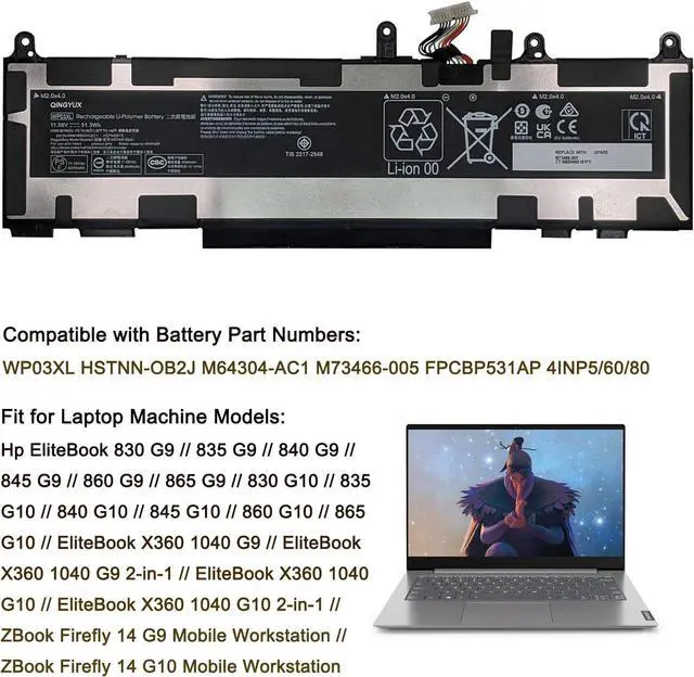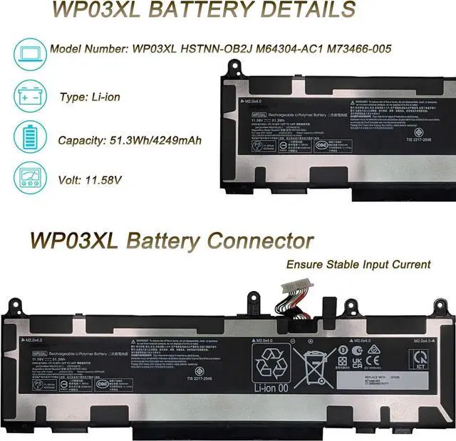1X WP03XL battery. Before purchasing, please open the back cover of the laptop to confirm the battery model and capacity.