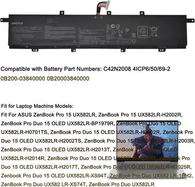 1X C42N2008 battery. Before purchasing, please open the back cover of the laptop to confirm the battery model and capacity.
