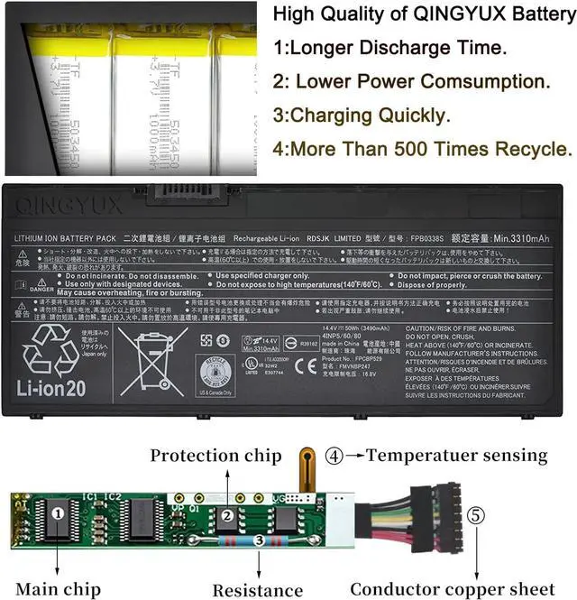 QINGYUX Batteries come with safety features designed to protect you from the common risks involved when using electronic gadgets UL/CE-/FCC-/RoHS certification for safety, and safeguards against short circuiting, overheating, and overloading.