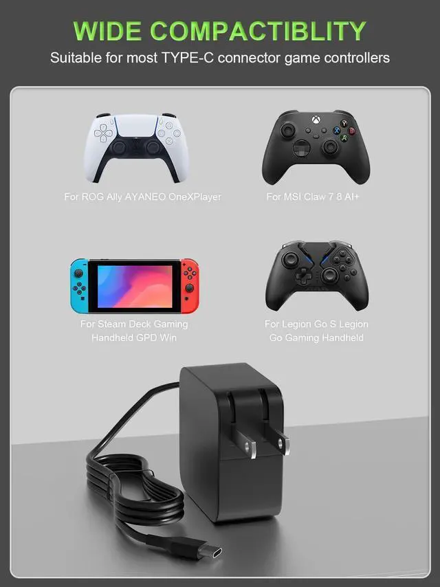 PowerPortnerLink 65W USB C Charger Compatible with Asus ROG Xbox Ally X, ROG Ally R1 Z1 Extreme, ROG Ally Z1 RC71L,ROG Ally Dock, for MSI Claw 7 8 AI+ A1M-050US Claw A1M-051US A1M-052US A1M-229US A2VM-001US A1M-026TW A1M-027TW Gaming Handheld Console PC, NintendoSwitch OLED Console, Switch Lite, Switch 2, Switch tv dock, Switch Station, Switch classocs, Switch controller, Switch charging station, XBX controlle, ps5 controller, xbox Controller