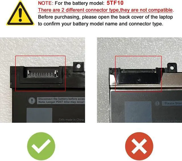[ Note ] :There are 2 models fit for the laptop: 4 Cell -- 5TF10 64Wh ,6 Cell -- NYFJH 97Wh ,4 Cell is short , 6 Cell is long ,please open your laptop back case and check your original battery , then choose correct one .