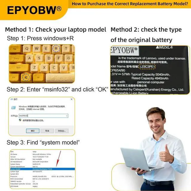 Purchase SkillsPlease open the back cover of the laptop before ordering and make sure that the original battery model is consistent with the listing. After getting the battery, please install the battery correctly, make sure that the battery connector is firmly connected to the laptop motherboard, and use the original charger to charge the laptop.Discharge the new battery to 5% (not 0%), then charge and cycle 3-95 times to wake up the new battery.