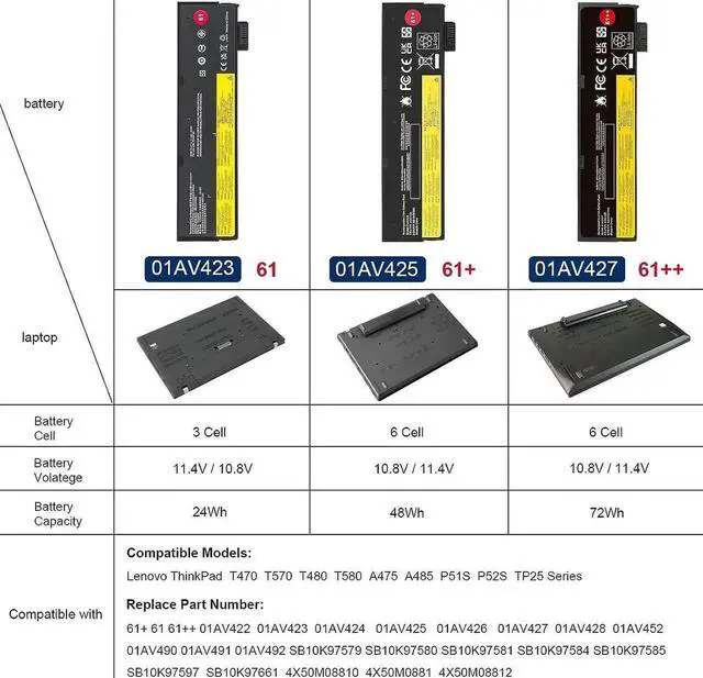 Compatible Part Number61++ 01AV427 SB10K97584 4X50M08812 01AV428 01AV492 SB10K97585.