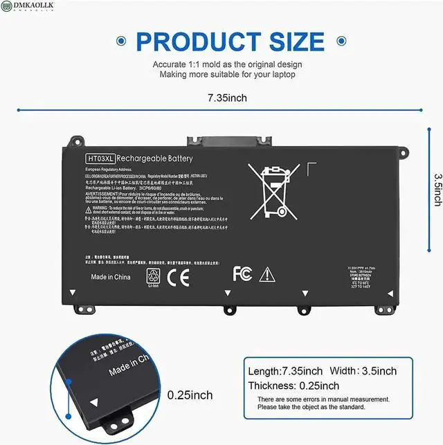 • Warranty :Rest assured with 60 days Refund and 12 months Replacement,also get our friendly customer service;(Note: The return window will be closed a month after you received HT03XL Battery .If you have any problem with L11119-855 battery, HTO3XL Hp Laptop Battery, hp ht03xl rechargeable li-ion battery, please Contact us - in "YOUR ORDER" options click the "contact seller")
