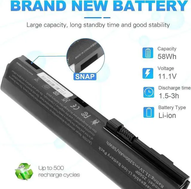 : 6 Cell, Li-ion battery, Rated at 11.1V ( 10.8V Compatible) 5200mAh