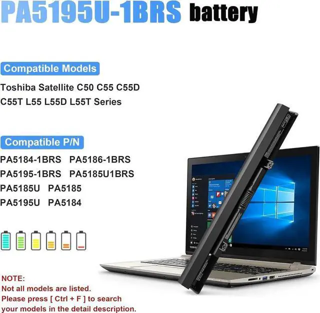 Fit laptop models: Toshiba Satellite C50-B C55 C55-C5241 C55-B C55-B5170 C55-B5200 C55-B5201 C55-B5202 C55-B5270 C55-B5296 C55-B5298 C55-B5299 C55-B5300 C55-B5302 C55-B5353 C55D C55D-B5242 C55D-B5244 C55D-B5308 C55D-B5310 C55T C55T-B5110 C55T-B5109 L55 L55-B5276 L55-C5346PL L55D L55T S40 S55 S55-C5274 S55-B5289 S55T S55T-B5233 S55-B5280 ( Detailed model see below product description. )