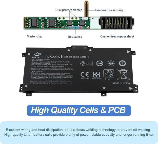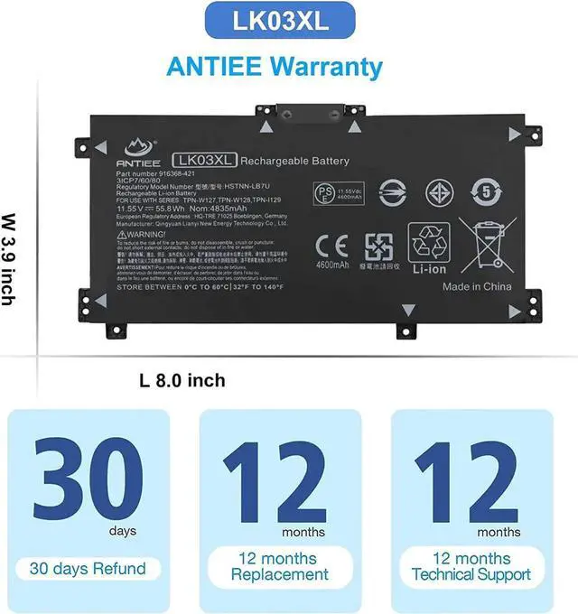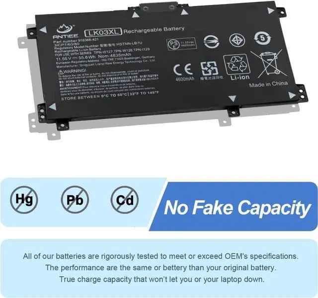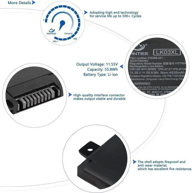 Replace Part NumberLK03XL L09281-855 916814-855 916368-421 916368-541 HSTNN-LB7U HSTNN-LB8J HSTNN-UB71 HSTNN-UB7I HSTNN-IB8N HSTNN-IB8V L08855-856 L08934-1B1 L08934-2C1 L09049-1B1 L09280-855 L09911-141 L09911-421 L09911-1B1 TPN-W127 TPN-W128 TPN-I129 LKO3XL LK03048XL LK03055XL LK03052XL.