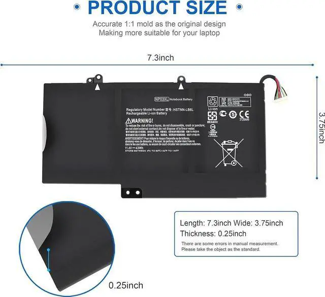 SECURITY & RELIABILITY: Our NP03XL 761230-005 batteries for HP are assembled from top quality material and circuit boards to ensure fast charges and low power consumption, 100% New from Manufacturer, Overcharge and Overdischarge Circuit Protection, Over-temperature and Short-circuit Protection, up to 500 recharge cycles over the life of the battery, meet OEM standard. You can buy it with confidence and use it safely.