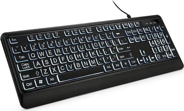 Large Print Keyboard- The large keys are slightly spaced, featuring big print letters to lowers the chance of hitting the wrong key. Perfect for elderly, the visually impaired, schools, special needs departments and libraries, as well as companies.
