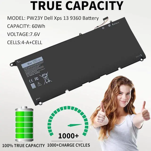 Long-lasting Performance: Experience rapid charging and minimal power consumption with the PW23Y battery. With over 1000 recharge cycles, it' s engineered for durability and prolonged performance, keeping your laptop running smoothly for years to come.